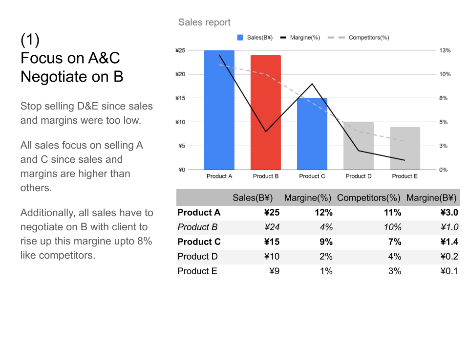 最初はキャッチュコピーなので簡単だが、次のが資料を読んでデータから伝わるプレゼン資料をつくるということだった。データということはグラフがはいる。グラフは、私の仕事では手を抜いちゃいけない分野だ、でも納期もあるからサラサラっとかいたけどね。