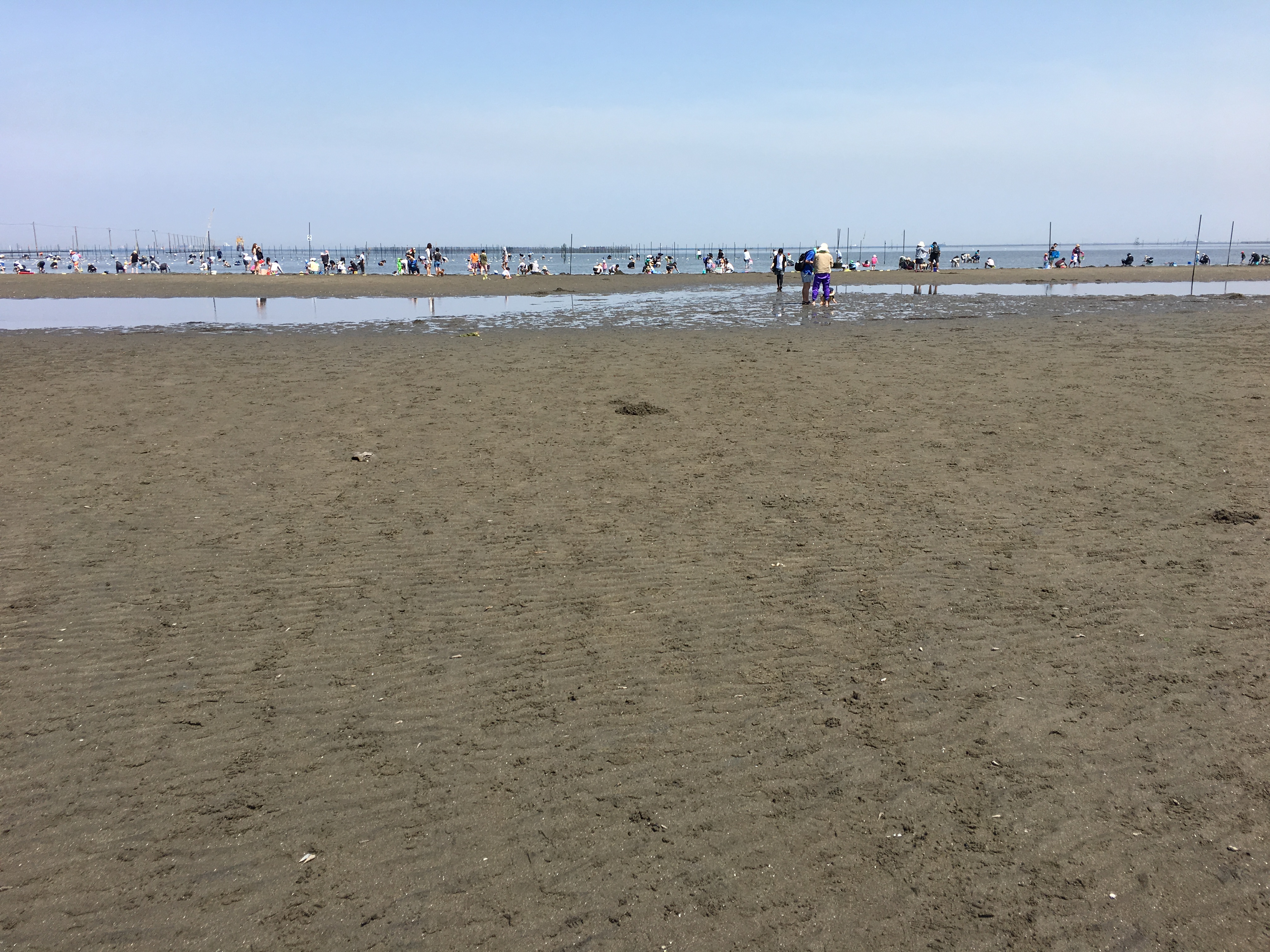 連休だから無理もない。干潟の人だかりをみて、この人数で干潟ホジホジしてて、アサリがまだ干潟に残っているのか?と途方にくれる。早朝に大量のアサリをばらまいてるとしても、この人数では残ってる気がしない。実際少し干潟を引っ掻いたが、いるのはヤドカリだけ。最初はヤドカリも珍しいが、じき飽きてきた。