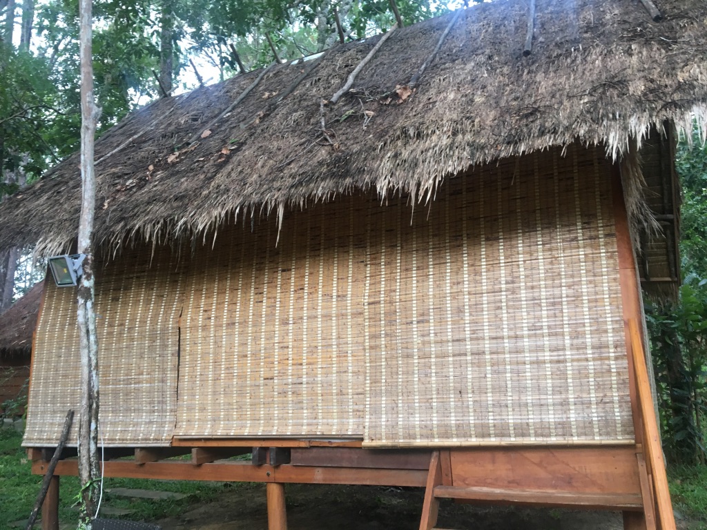 マイクやセッティングを確認したあと、バンガロータイプの部屋をご提供いただいた。前回はテントというか高床式住宅で、床の隙間から地面が見えるようなワイルドな部屋だった(笑)。お水が余ったら床に流せば地面が吸ってくれるのだった。