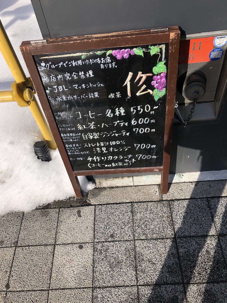 札幌でウェブ解析士協会の北海道支部向けフォローアップ試験対策講座を開催する前、小一時間時間が空いたので、近くの喫茶店で時間をつぶそうと思ったら、店名が読めないカンバンのお店があった。