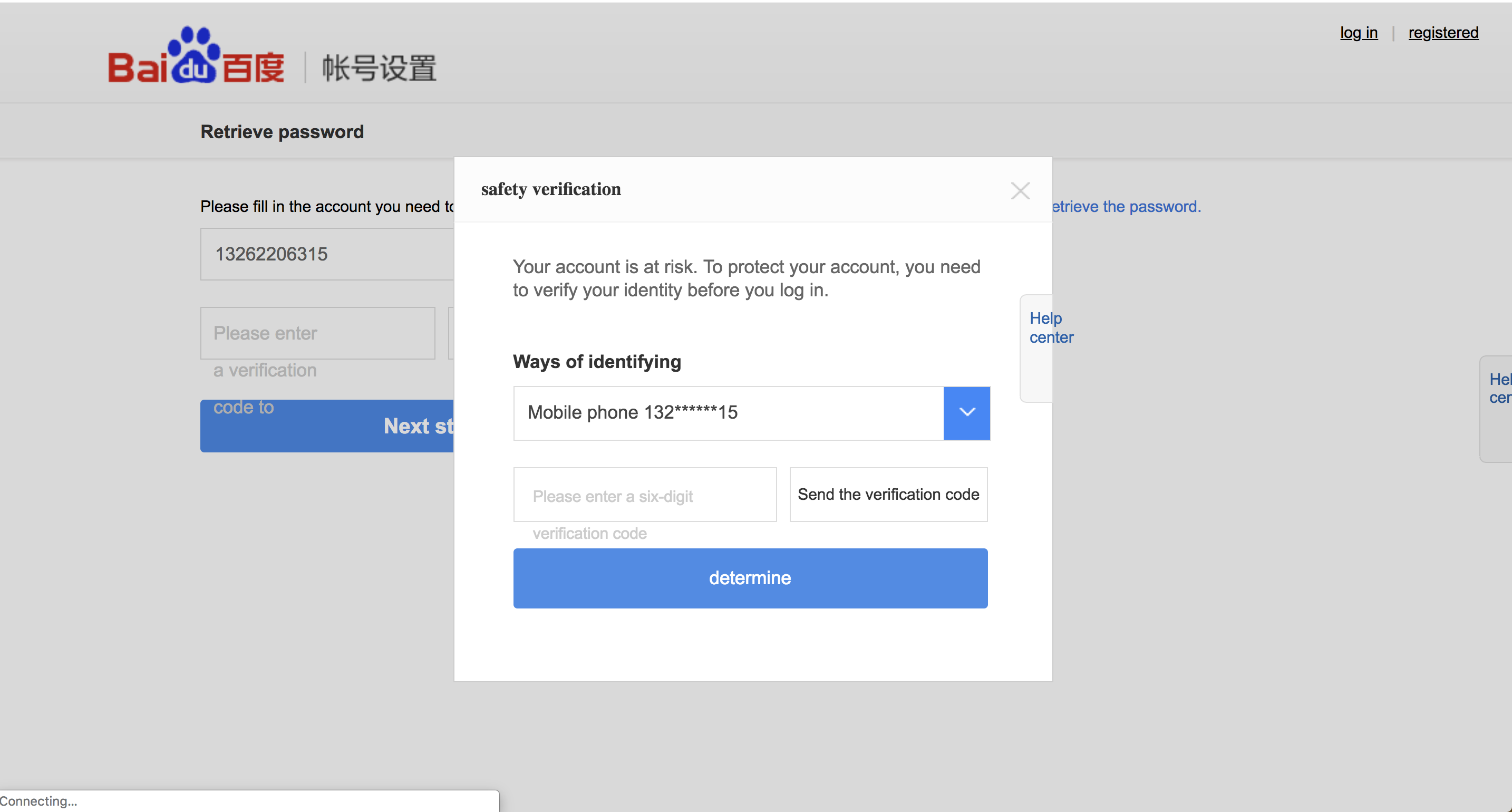 ログインしようとしたら、人生初のBaiduアカウントなのに、いきなり本人確認される。